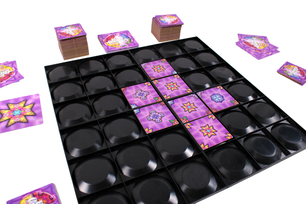 The goal of Four Corners is to score your Goal Cards! With Kaleidoscope, you’re doing that amidst a rainbow-colored backdrop of colors and shapes. Exciting stuff.
