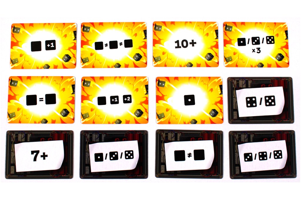 - Keep in mind that there’s no 6; it’s a blank face. That can help (or hurt) you. Specifically, the blank side will count as a 0, which means it won’t hit any Warning Cards’ effects but it also won’t help towards your total. Sometimes it’s fine to leave it that way, and sometimes you need to reroll and hope that you don’t bust on the next roll. It’s rough.