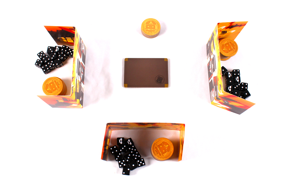 Set six of them aside. With two players, return twelve of the Gang Tokens to the box and twelve of the dice. Distribute the Gang tokens and dice equally among all players.
