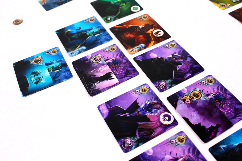 - It’s actually really nice to not have to keep track of basically any resources; everything is on the cards. It saves a lot of jockeying with resources and extra pieces. The only thing you really need to track is which card is your highest-value card of each faction, and they have little tokens for that. And even then, that just makes bookkeeping at the end of the game easier. It’s a very streamlined experience.
