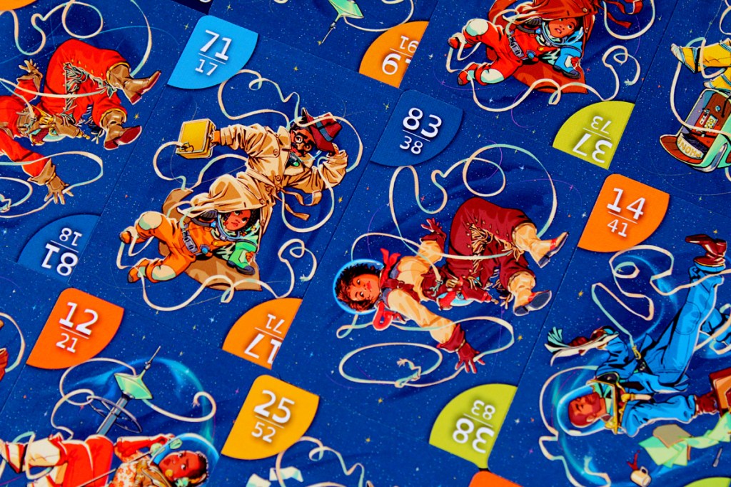 This one’s a bit tricky but still pretty fun! So what you’re doing in Tether is playing astronauts in space, but they get lonely really easily, so you never want to play them alone! On your turn you can either play astronauts or you can set them adrift!