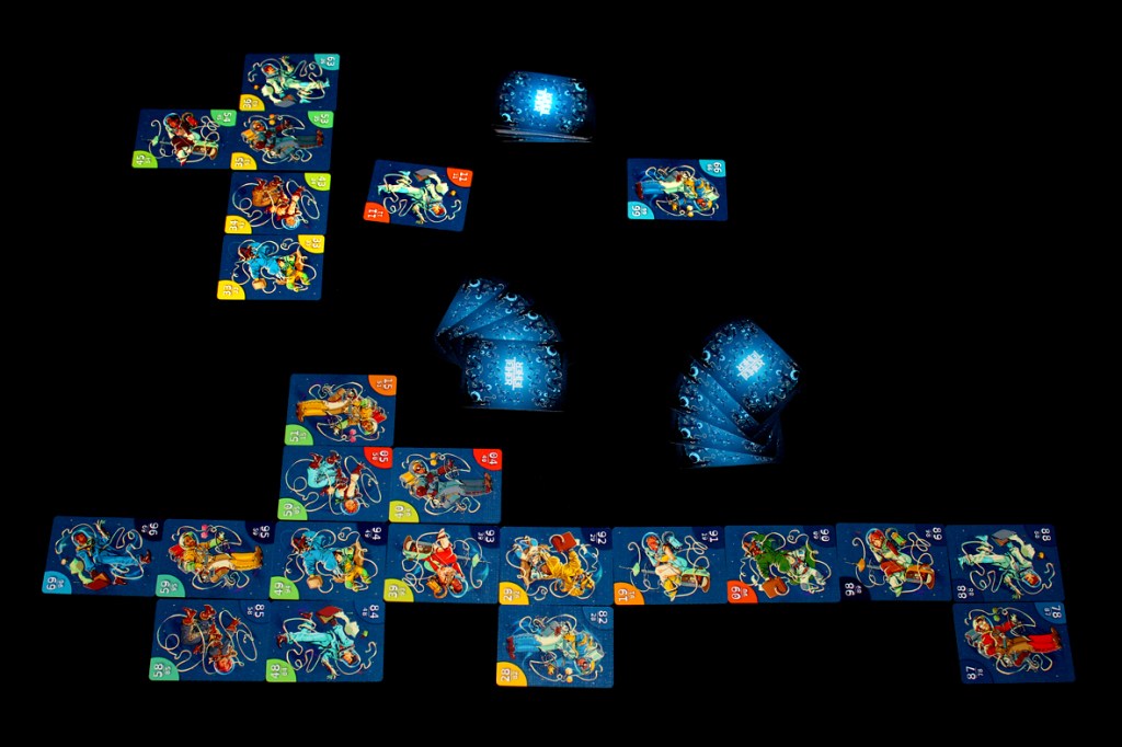 - It’s pretty easy to reset and play again. You just gather all the cards up, shuffle, and redeal. You don’t even need to make sure they’re all facing the same way, since it’s a mirror deck, which is great. This is an extremely fast reset game, and I love that. Adding it to my list of “rack ’em” games.