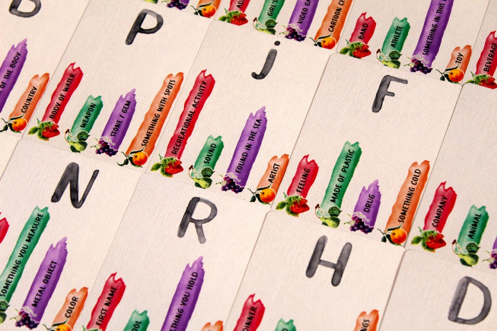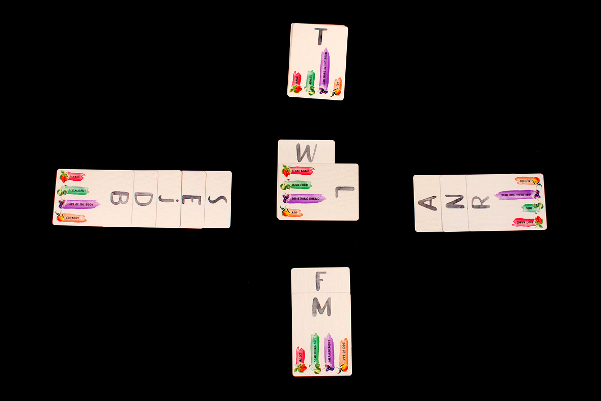 - The rotating system for cards does a good job making sure you don’t have a bunch of repeats, though if you play multiple games you may want to reshuffle if you get similar combinations. It can happen, so if you play multiple games in a row, just switch the fruit if you’re about to get the same letter-category combination that you got in the last game. That way it stays fresh. There should be enough combinations that you can play for a while without seeing too much overlap, especially if you’re playing with new groups each time.