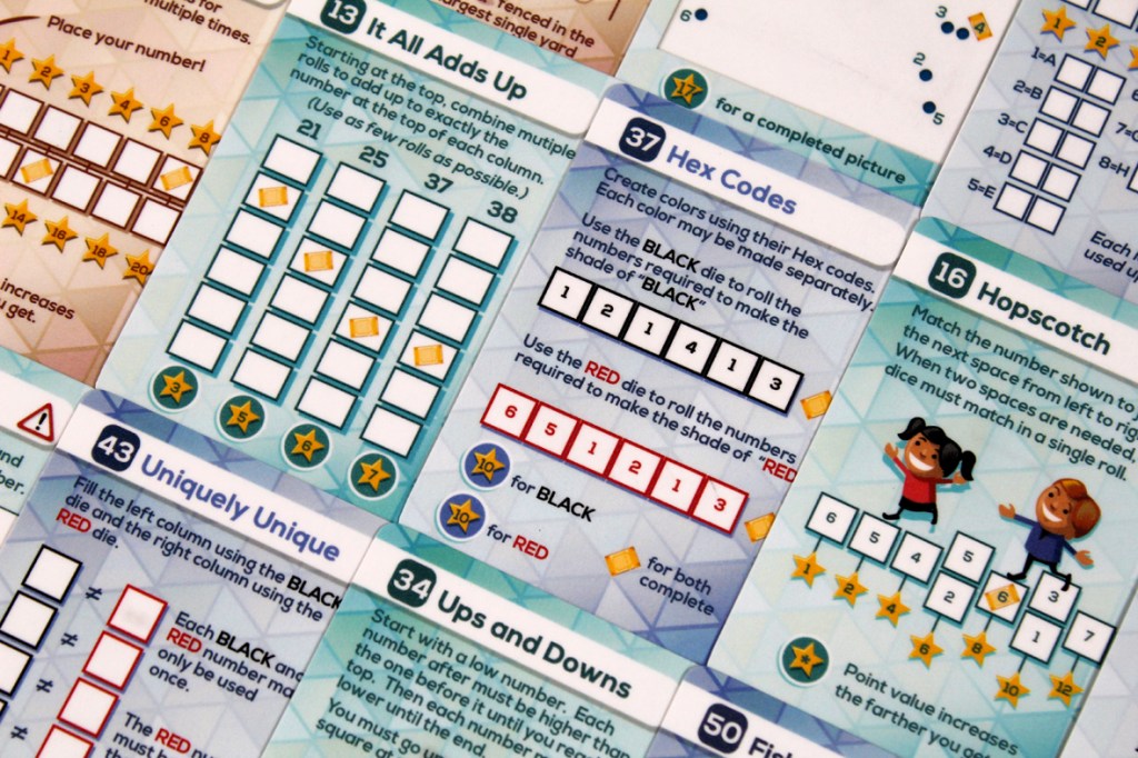 - Similarly, this is an extremely approachable game, but I personally would enjoy a bit of additional complexity; maybe some Expert Mode cards or something. That’s just me. You can get a few cards that are pretty tough, like the Golf Card (which demands 9 consecutive rolls, for instance), but I’d be interested to see where the challenge can extend for a game like this.