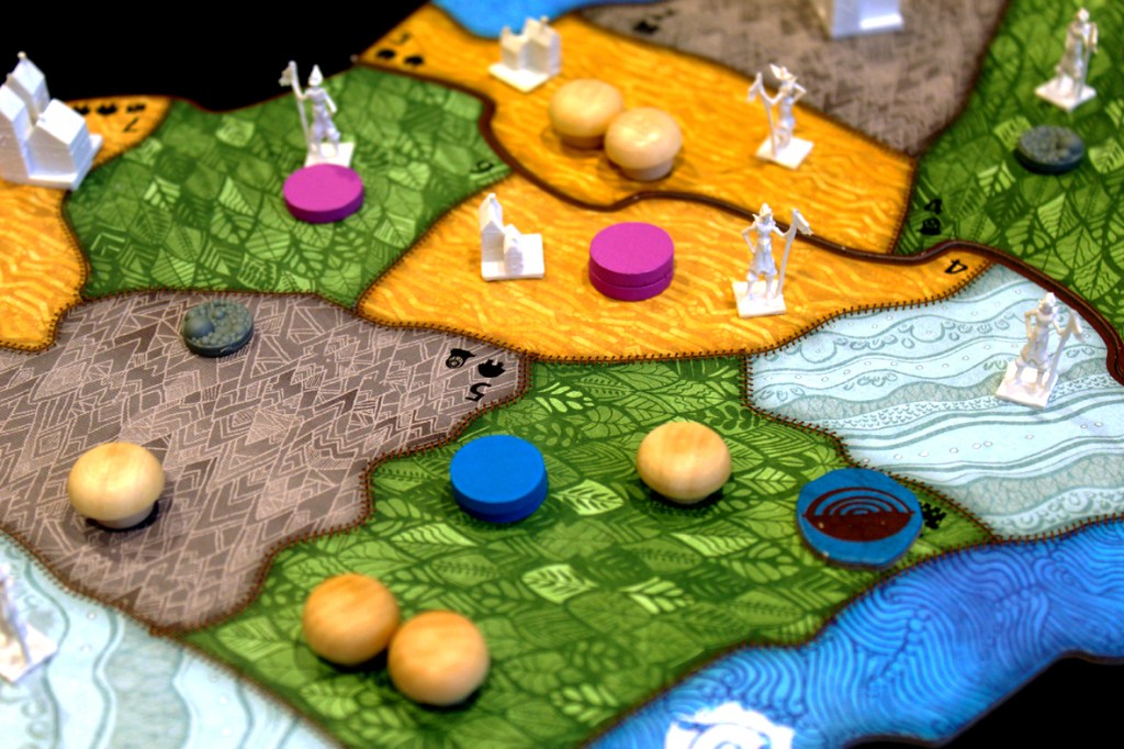 - The components too! They’re great. The little invader tokens are very nice in a conquistador kind of way, which is interesting. Pretty much everything else is great too! I particularly like that the city tokens are set up so that you can track how much damage has been done to a city in one turn, before it heals up. Hopefully you do three, but just in case, I suppose.