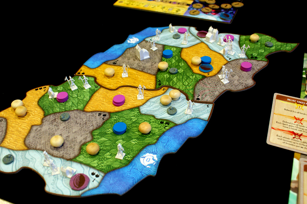 - Thematically, I think this game is amazing. It’s a really cool anti-colonialism theme being presented as a particularly difficult and complex game. I love how rich the game’s lore is, as well, since each spirit is given extra backstory and context that ties into the other spirits in the game. It’s a world that I’d like to know more about, if possible, so I’m always glad to see more expansions.