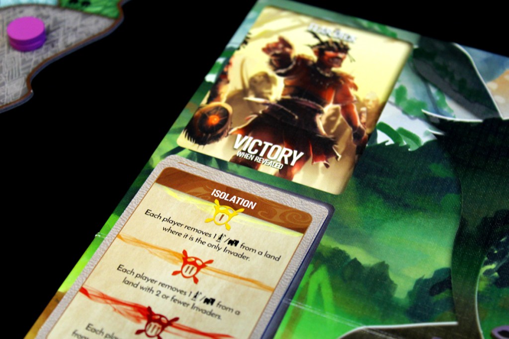 - Look for combo potential between your abilities and powers! You’re in this together, after all. There are many, many different combos available to you between spirits, abilities, and powers. Too many for me to enumerate in this entire review. Part of the game is figuring out how to find them and then how to make them work for you. Look on the back of your Spirit Board to see what you focus on, and see if that overlaps with another player or contrasts with them; both options may give you ideas for what to do next. If you can get combos working between players, you can take out huge swaths of invaders in a single turn, sometimes.