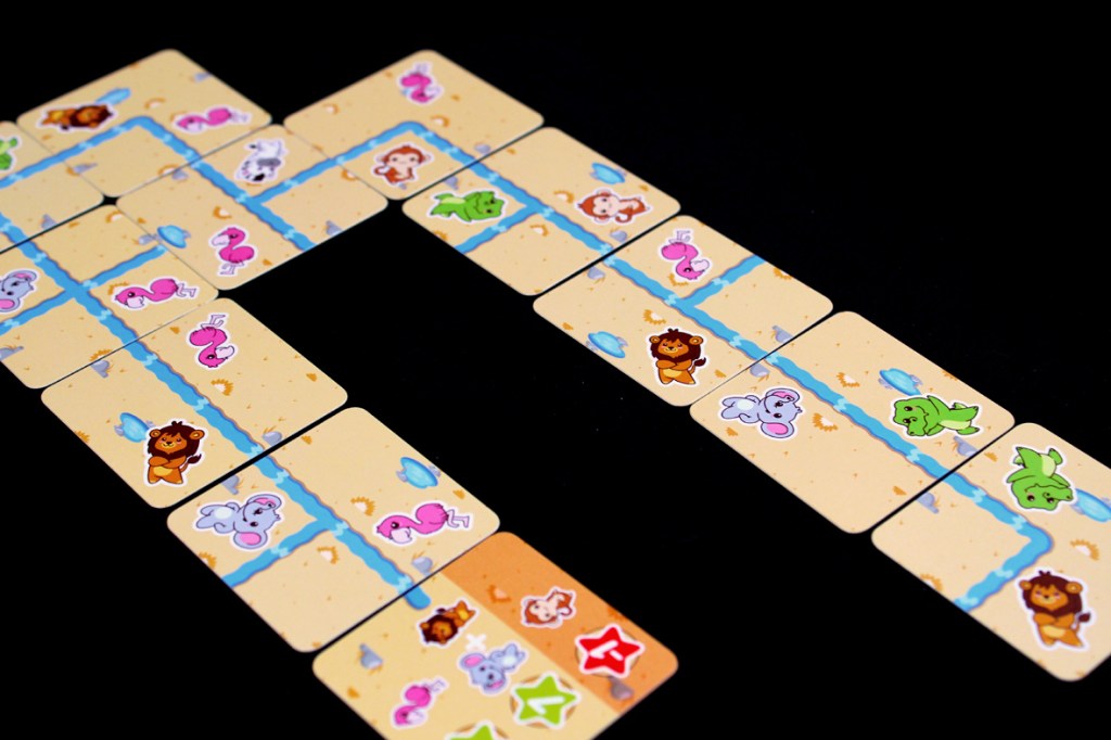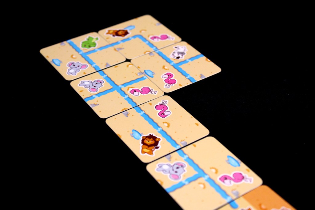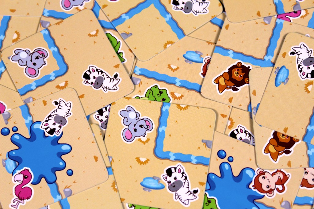 So, Safari Splash! is a super quick game of real-time river building. Let’s try to get through the rules with the same … alacrity.
