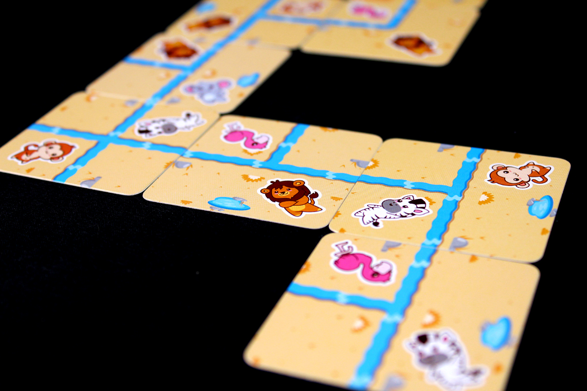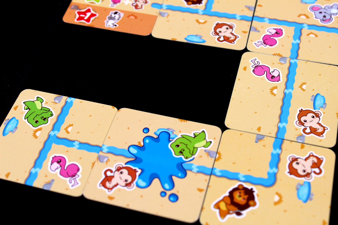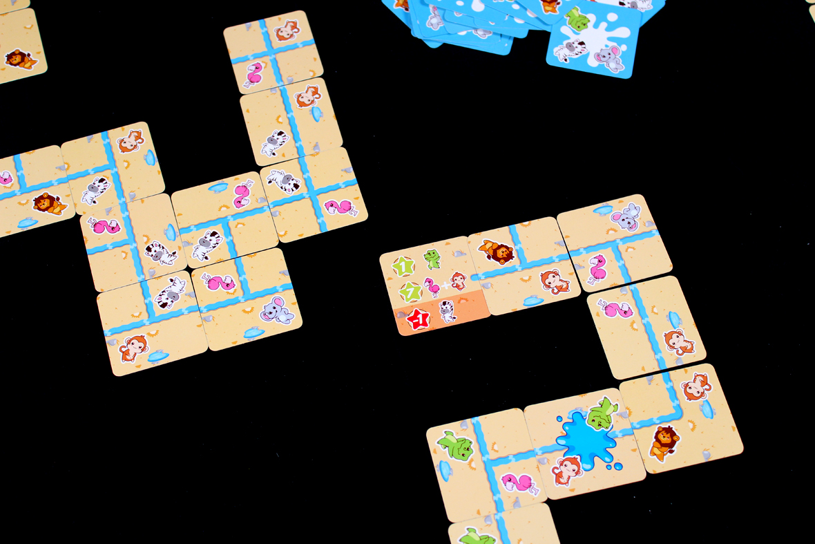 So, Safari Splash! is a super quick game of real-time river building. Let’s try to get through the rules with the same … alacrity.