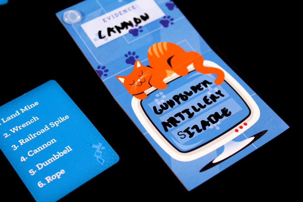 Overall, I really like Glitch Squad! I think I already knew I was in for a good one when I saw the cat on the cover, but Glitch Squad also takes a couple different elements of games that I like and combines them in a way that feels fluid and interesting! I love word association games (or really any game where you’re trying to guess a word), so adding that and real-time play is always a recipe for a good time for me. However, giving players the ability to subtly mess with other players’ clues elevates the game to a roiling good time. It’s really interesting how one word can completely throw off your thought process and direct you totally off base, for instance, and I like how Glitch Squad has a pretty good system for handling that, handling right and wrong answers, and for handling the overall outcome of the game. Sure, your password might be CHEST, but couldn’t it also be CHESTNUT? Again, hard to say. The core of the game is also impressively dynamic; you’re usually always doing something, and if you’re just watching, why not try to guess the word as well? Just … do that privately, so you don’t give anything away. I don’t love the variance on the Evidence Cards themselves, just because some are significantly more specific or challenging or complex than others, but I feel like over the course of shuffling and the game it mostly irons out to a perfectly fine amount. I’ve been trying to get back into party games as part of my “Let’s Try to Be More Fun” Initiative, and Glitch Squad has been a worthy addition to the pile. If you’re looking for a fun party game, you love word association and a bit of subterfuge, or you’re just a cat fan, I’d definitely recommend checking Glitch Squad out! I’ve had a blast playing it.