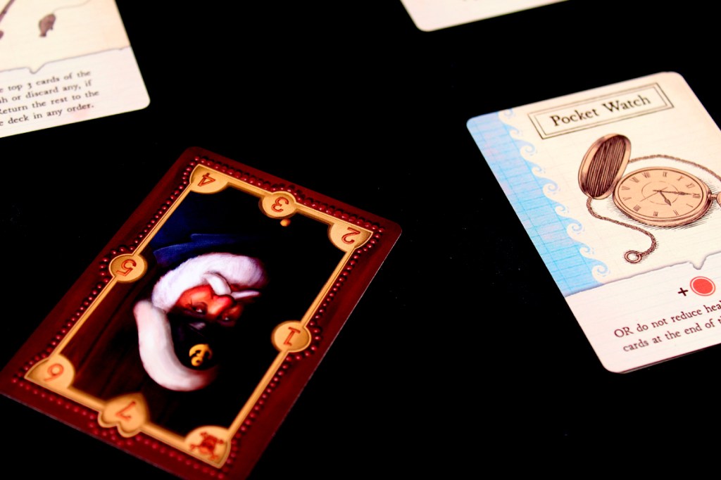 - I like that you lose health for drawing specific cards; it’s a nice way to add a ticking clock-style mechanic (beyond the Market running out), and it forces players to smartly manage their health. Just another thing you have to track during the game, which adds a nice perpendicular challenge. Yes, you’re managing the Challenges on the board itself, but you can’t overlook what’s happening to your character or you’ll lose another way. You have to keep multiple plates in the air to be successful; I kind of love that.