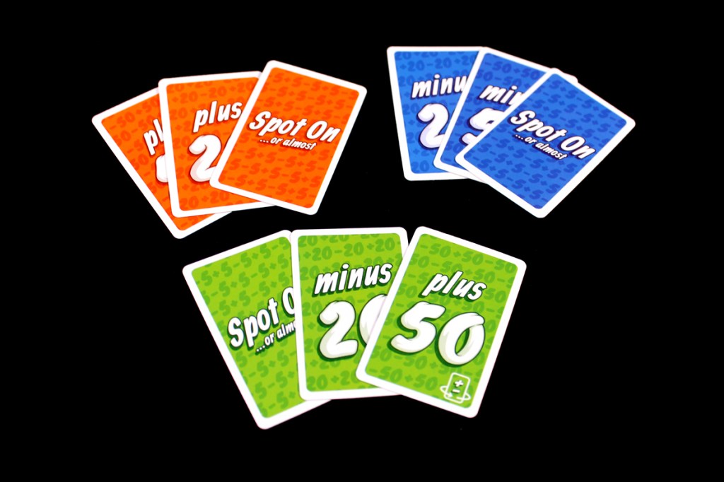 - Not 100% sure why this is, but everyone tends to use the Plus / Minus 20 and 50 a bit incorrectly (they get confused as to which card it modifies). People just generally use the wrong side; in our games, we had a lot of someone playing the -20 on the target number and then playing a low value of their own, when they should have played a +20 on their own card. We understood what they meant, so we allowed it, but it’s just something that never quite stuck in our players’ heads (mine included).