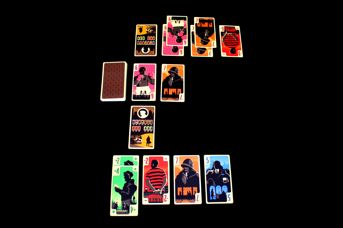 District Noir plays pretty quickly, so this section will be a breeze. Each round, you’re going to take turns playing cards and ultimately take cards from the center. That’s pretty much it.