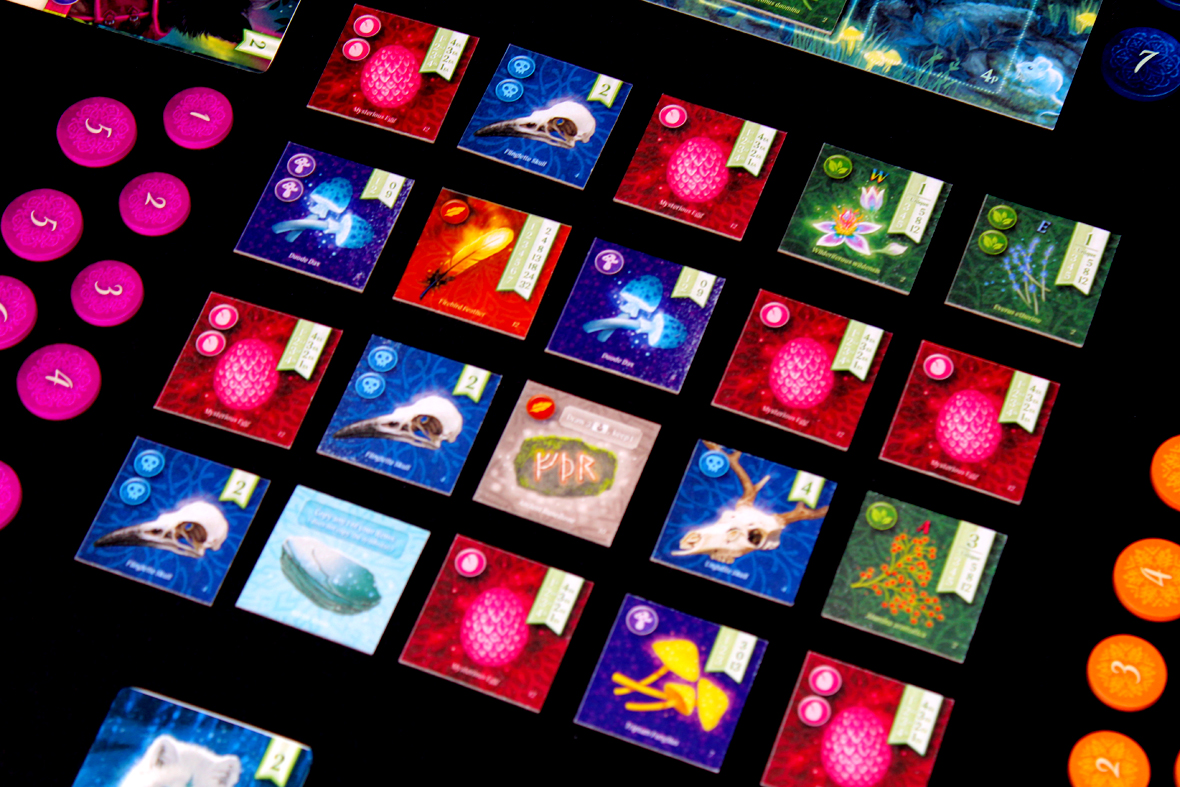When the Moonlight Round ends, that’s game over! Resolve the Forest Sprite Board one last time, assign Mirror Stones, and score! Concoctions score for symbols present among your tiles, so that can be even more points. The player with the most points wins!