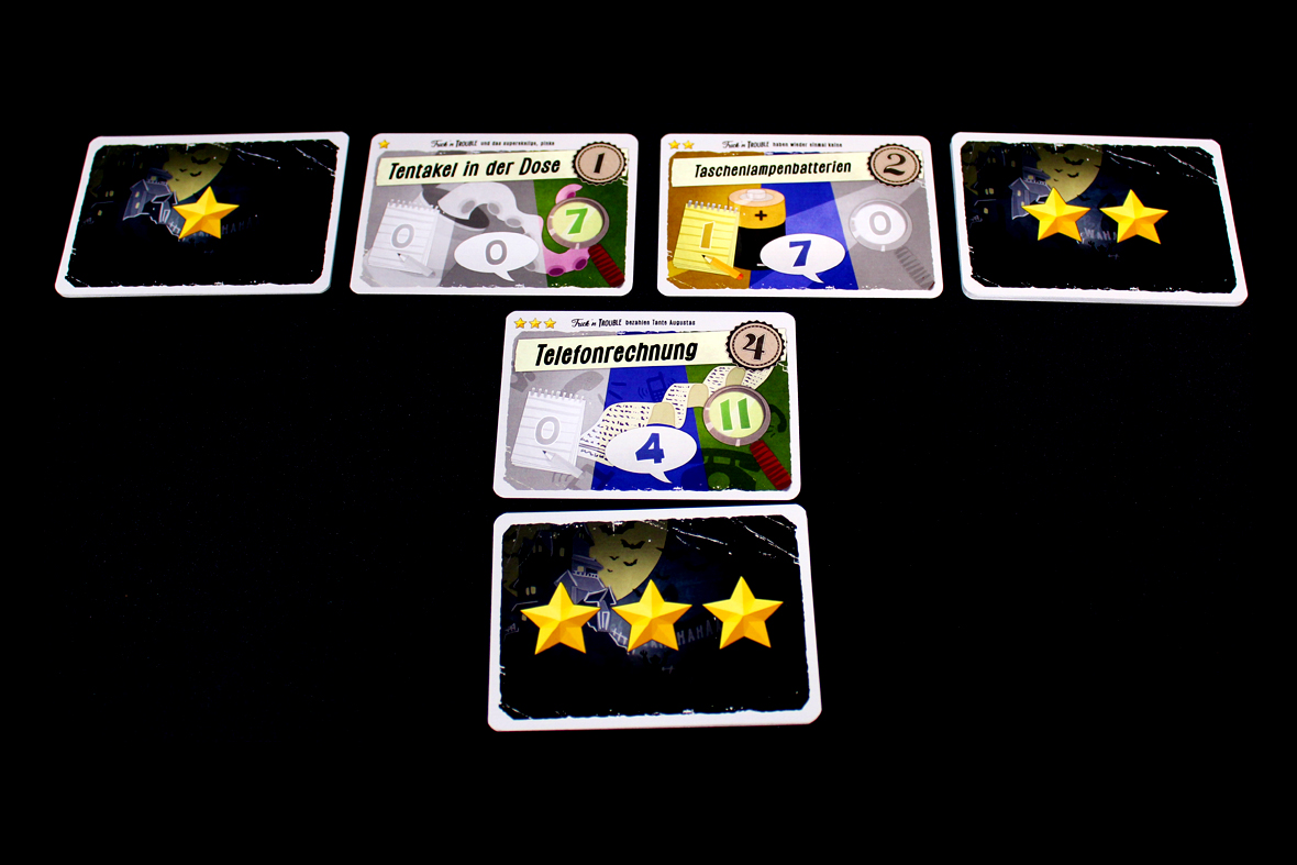 After the trick ends, count up the total values of each color and see if they meet or exceed any of the tasks! If they do, take the task card as points and start a new round! You can collect multiple tasks in one round. After nine rounds, if you’ve earned at least 40 points, you win! If you get good and you consistently beat 40, try Expert Mode! To do that, put tricks away without looking at them again and skip the phase where you can swap out tasks before the trick starts! Good luck!