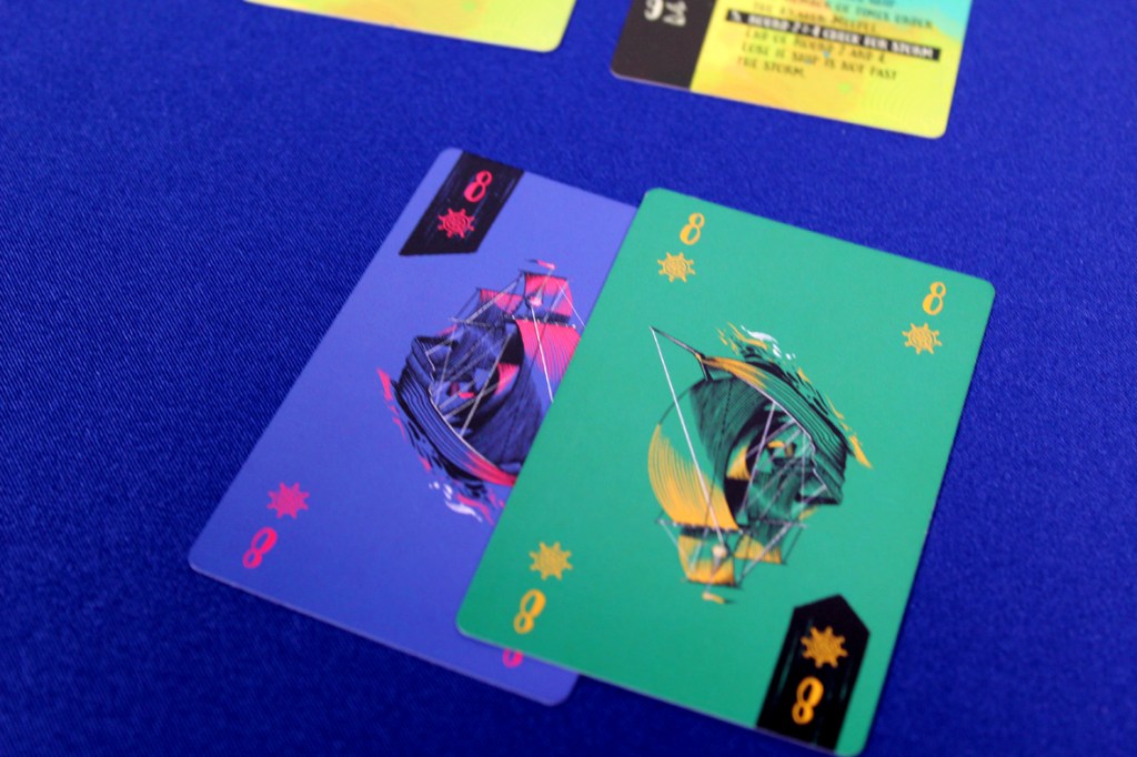 Overall, I think Sail is a great two-player game! For me, trick-taking, especially at two players, can always be a bit of a dicey proposition. The Fox in the Forest did it extremely well, and The Fox in the Forest Duet was extremely not my speed. The Crew adds a dummy player, which also works, but there usually has to be something. Sail does a great job using the trick-taking as essentially an action selection vote. Both players can (potentially) influence which action is taken, but if you play poorly, you may force your partner to play a card that doesn’t help anyone. It requires thoughtful play and then some actual management and planning around how you want to move the ship. Crashing into islands doesn’t help anyone. Beyond that, though, there’s plenty to do and some good difficulty scaling; you can keep playing the game on increasingly-difficult scenarios to find a sweet spot for you and your gaming partner. Plus, it’s still quick enough to be a great date night game for gamers or a lunchtime game for friends without mentally exhuasting me, which is the dream. While the game is fun, granted, the art style of the game truly elevates it. Weberson Santiago is doing some of his best work on this game and it absolutely shines visually. Just a great game to look at. I love the color work and the cards and the suit art and the pirates; just an all-around triumph. I do wish the components were a bit larger, but that’s the sacrifice you make to hit that box size, I suppose. Either way, if you’re looking for a great two-player game, you love trick-taking, or you just want to live the pirate’s life, I’d recommend Sail! I quite liked it.