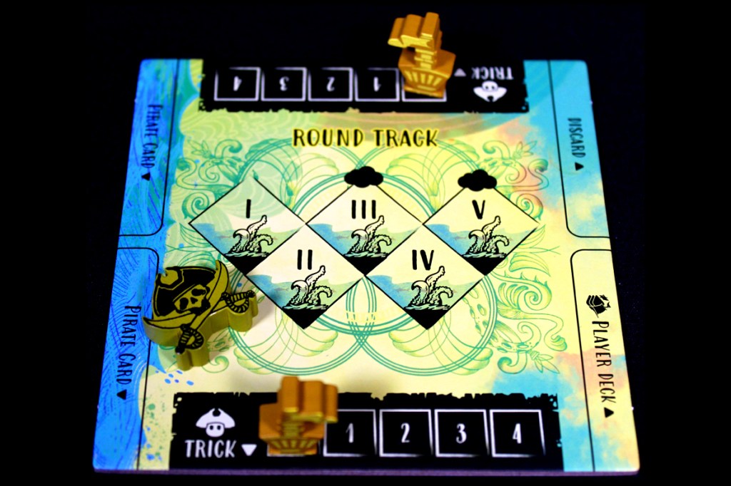 If either player wins four tricks, the round ends! You’ll reset for a new round. If you make it to the end, you immediately win! Otherwise, if you haven’t made it through the storms quickly enough or if you don’t make it to the end before the final round, you lose!