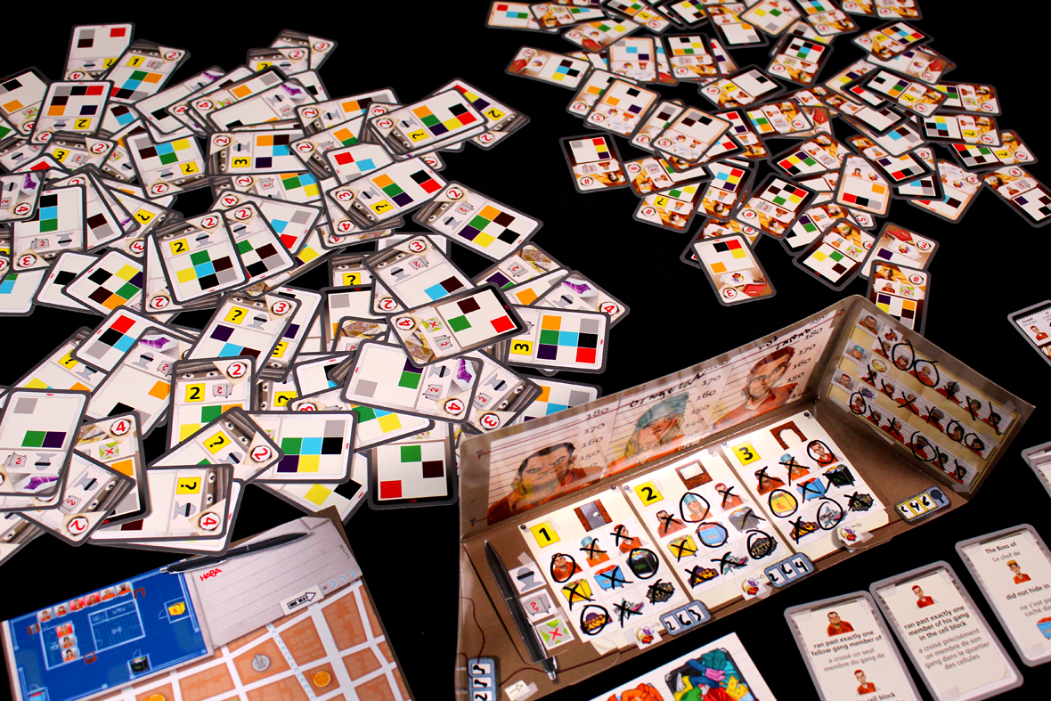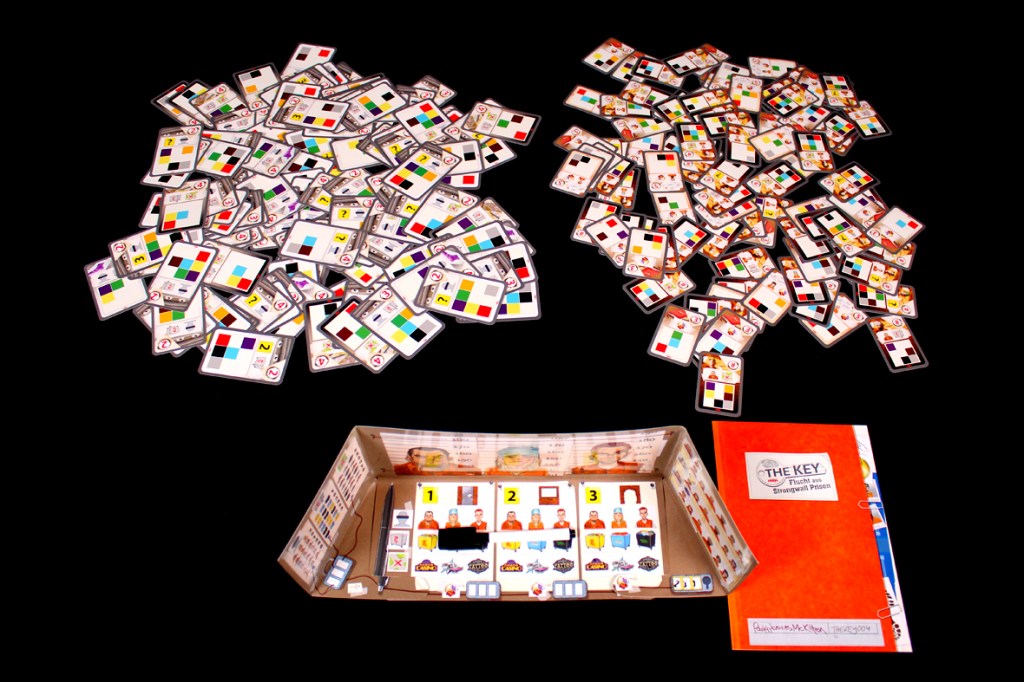 One interesting thing that happens is that there’s more player interaction here: certain cards require you, upon drawing another card, to reveal an open interrogation card, giving other players information for free. You don’t necessarily know that these cards exist before you draw, so you might accidentally help other players while conducting your own investigation, which is super. A nice way to increase player engagement in an otherwise fairly solitaire game. Interestingly, even these interrogations may not necessarily be helpful; the gang members lie about their bosses every time. The trick is, if you know who their boss is, you can figure out the truth (or vice versa!). I like that extra layer of things (and I’m also a bit impressed that this all works with the multiple paths that a game can take based on which key you pick). I’d love to see how this could be implemented in other The Key games.