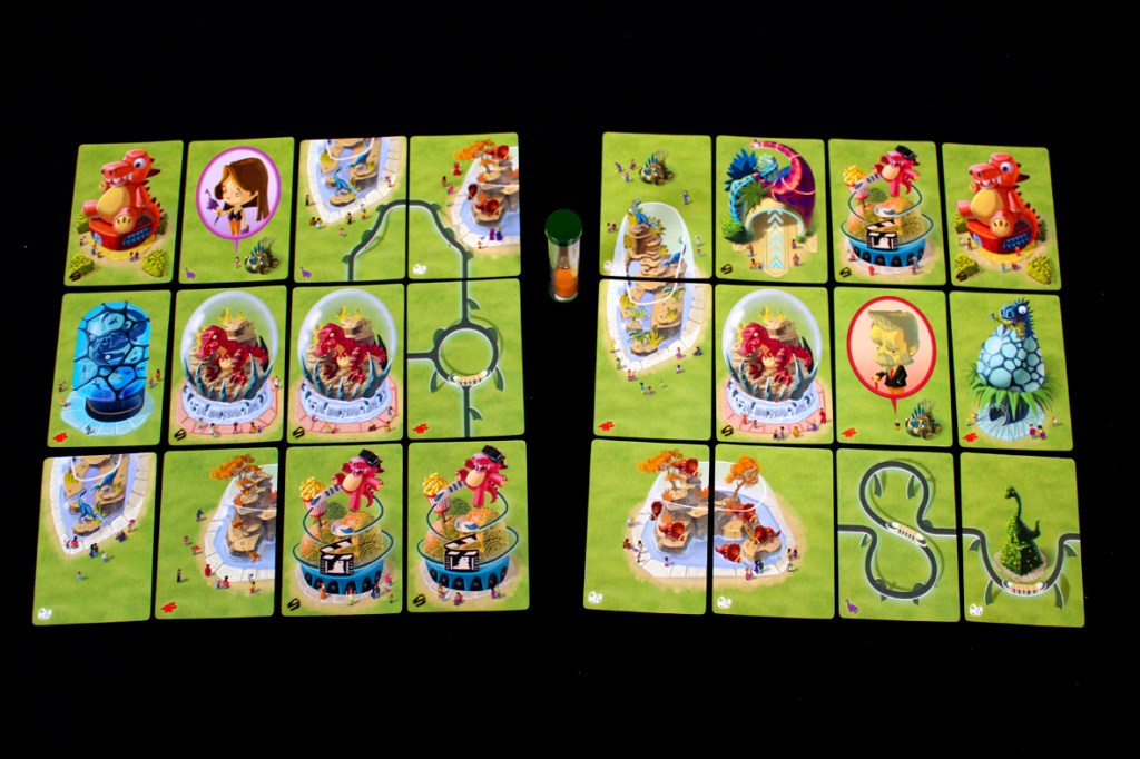 Overall, there’s a lot to like about Mesozooic! For fans of dinosaurs, generally, there’s a great set of dinos and art here, so the theme will definitely appeal to those folks. It’s also got a bit of interesting strategy to it, both in terms of the drafting element where players pick their zoo cards and then pass the rest on and in terms of the real-time zoo organization element. It has a lot of the same elements that made me find Flash 8 so delightful; I think I just like those speed-rotation puzzles. It’s quick, entertaining, and has a nice progression to it, too: as you get experienced, there are more complex cards that you can shuffle in for a more dynamic game.