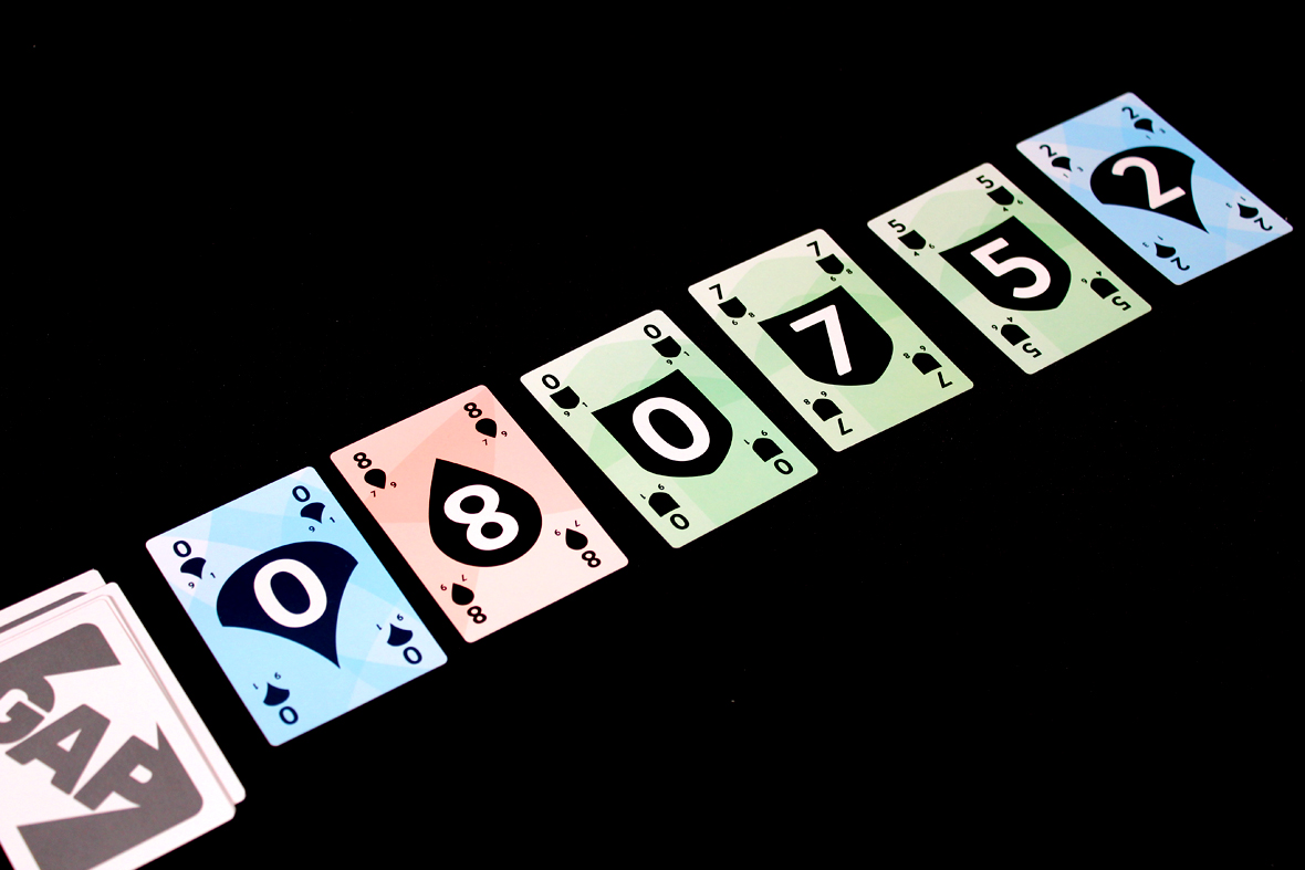 A game of GAP is played over multiple rounds as players try to hit a predetermined scoring target (usually 15, 30, or 70). Each round is composed of multiple turns, played until the players cannot play any more cards from their hands.