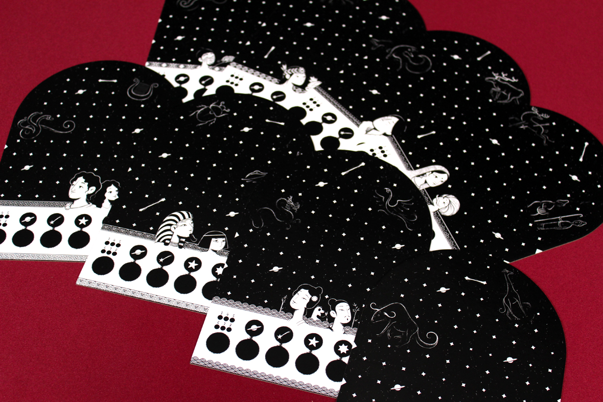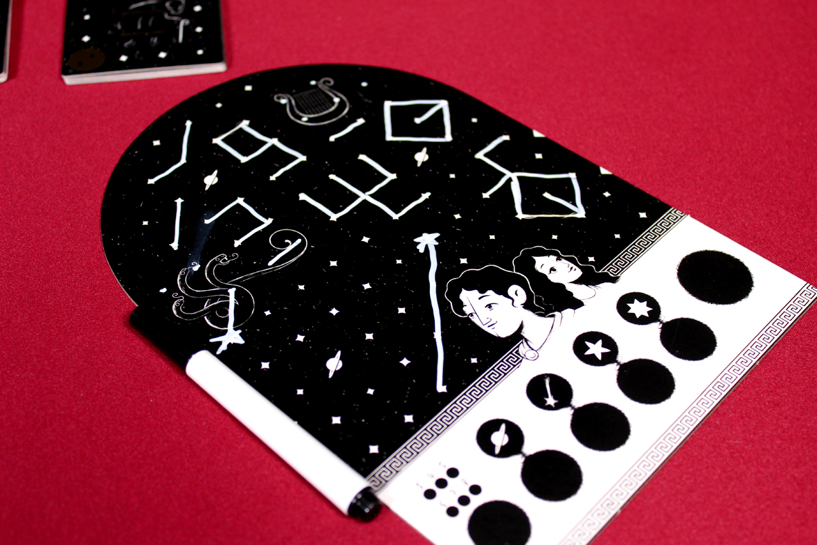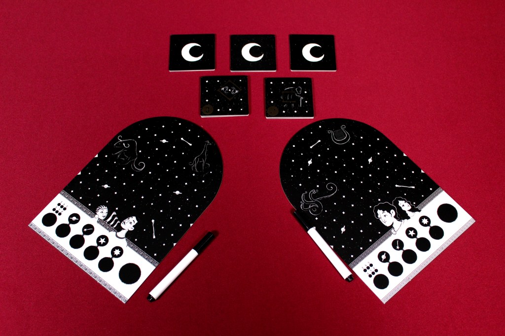 Look at the Stars is a flip-and-write game of constellation creation! Over three rounds, you’ll draw cards and connect stars to create constellations, but be careful! As the sun rises each round, you won’t be able to see (or connect!) those stars anymore!