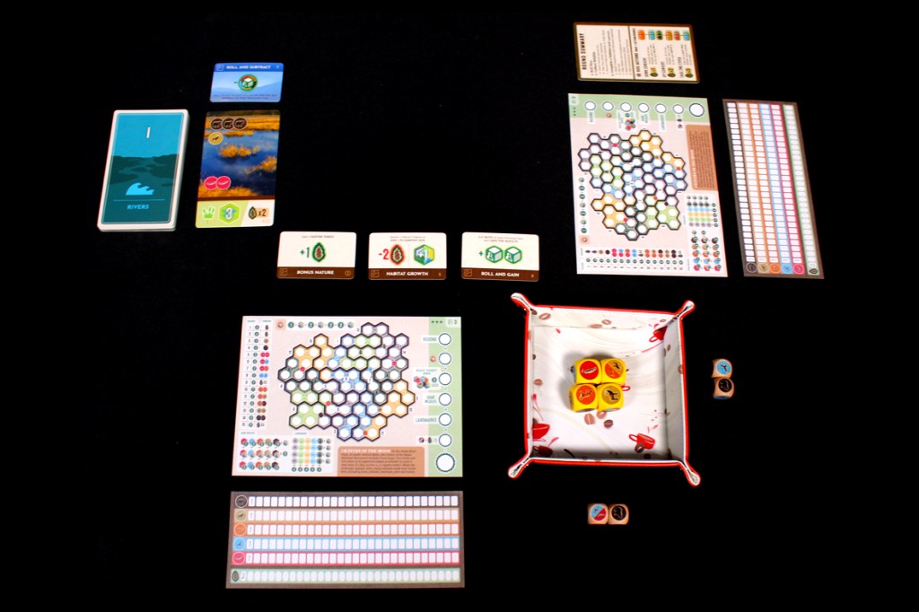 In Cascadia: Rolling Hills, you’ve left the waterways behind for a more elevated experience. They’re not necessarily mountains, but you’ll find the hills are alive with a lot of things to offer you. Still the same animals: the classics, though. Bears, elk, foxes, hawks, and salmon. Do you even need any others? So roll, write, and plan out your perfect ecosystem against the backdrop of the Pacific Northwest’s least flat ground. Can these hills take you higher?