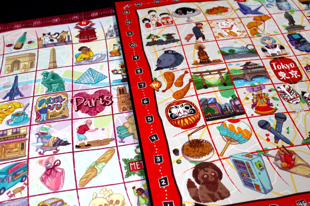 In Word Traveler, you’ve managed to travel to some of the most beautiful cities in the world! You’re looking for souvenirs, but unfortunately, you don’t really speak the language. You know a few words, so you’re trying to build a pathway based on those words between different local landmarks for your co-players to solve. Each player gets their own words and their own guide as to which spaces are valuable, and so they can build their own path for a team comprised of everyone else to solve. Sounds easy? You’d better hope so if you want to get the best souvenirs and the most points! Will you manage to have the best vacation?