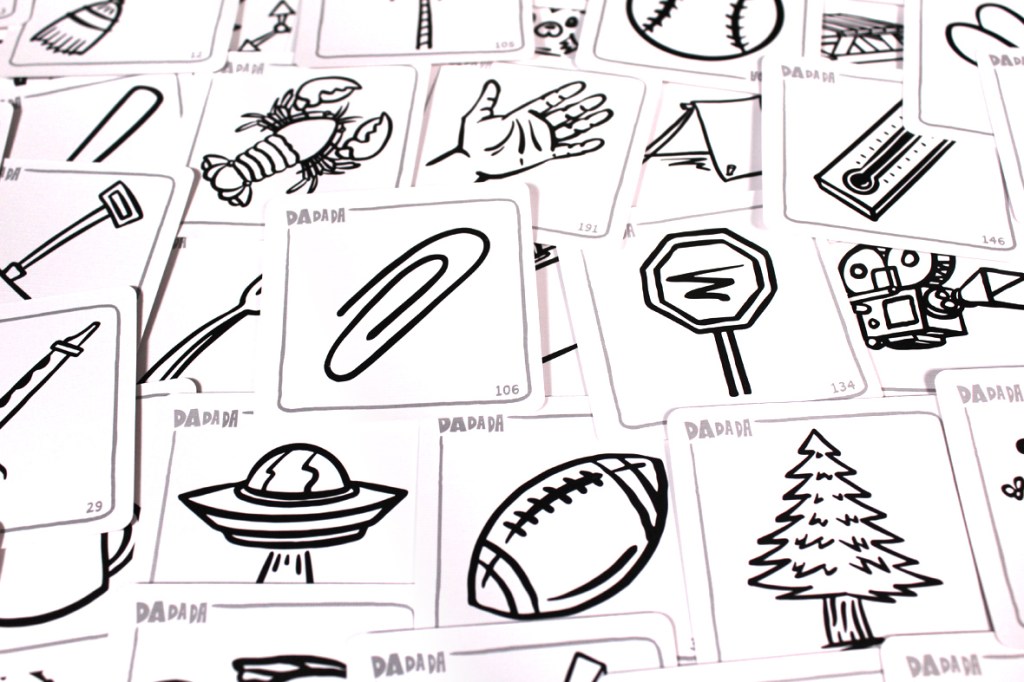 - Try to group things together at a high level; you’ll need to have the ability to relate cards to each other. Are they all animals? Related to people? Something you can touch? Tube-shaped? Whatever you can get players to agree to goes.