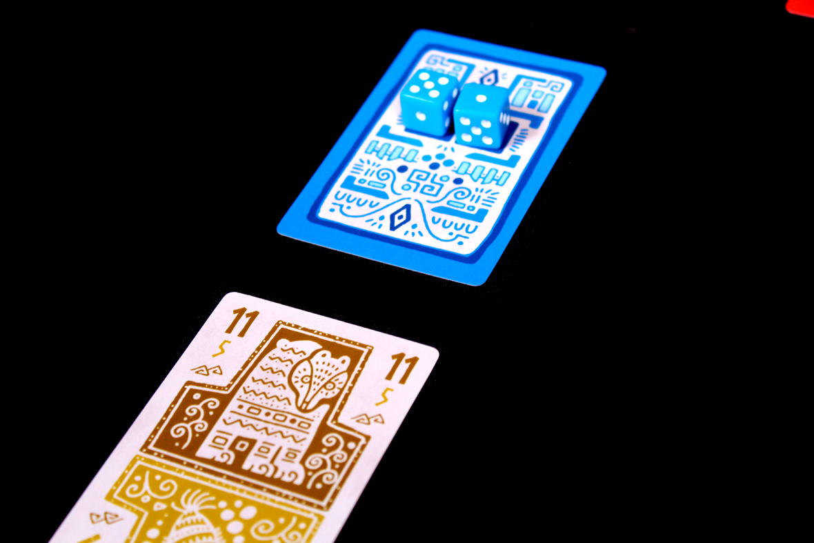 After six tricks, all the cards in your hand get flipped! Then play six more tricks with all your cards on the Prey side. After all twelve tricks have been played, check to see how many tricks each player won. If any player’s won a number of tricks equal to one of their target numbers, they earn a point! If they already have a point, they win!