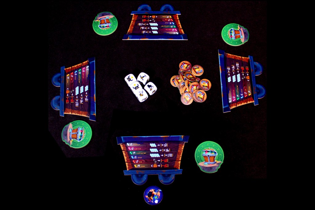 But there are plenty of fun things, too. Yes, the gems are rather generic and don’t match the image on the cart at all, but, I don’t entirely blame them for going for cheaper components when you just need gems. Plus, this is the classic gem shape, now; I can’t really imagine something else. There’s something fun about getting a free gem every turn, even if it sucks, and there’s even more fun trying to get rid of crappy gems before they dock your score. It wouldn’t be as fun if all the gems were good! The intrigue is part of it, to some degree. And that’s what makes Quartz: The Dice Game a pretty fun warm-up game for a night. You can cut loose, rob your friends, and occasionally get screwed by your own hubris and misunderstanding of probability. And isn’t that what board games are all about? If you’re thrilled by the prospect, you love chucking dice and making bad decisions, or you just really, really love pulling gems from a bag, you’ll probably enjoy Quartz: The Dice Game! I had fun with it.