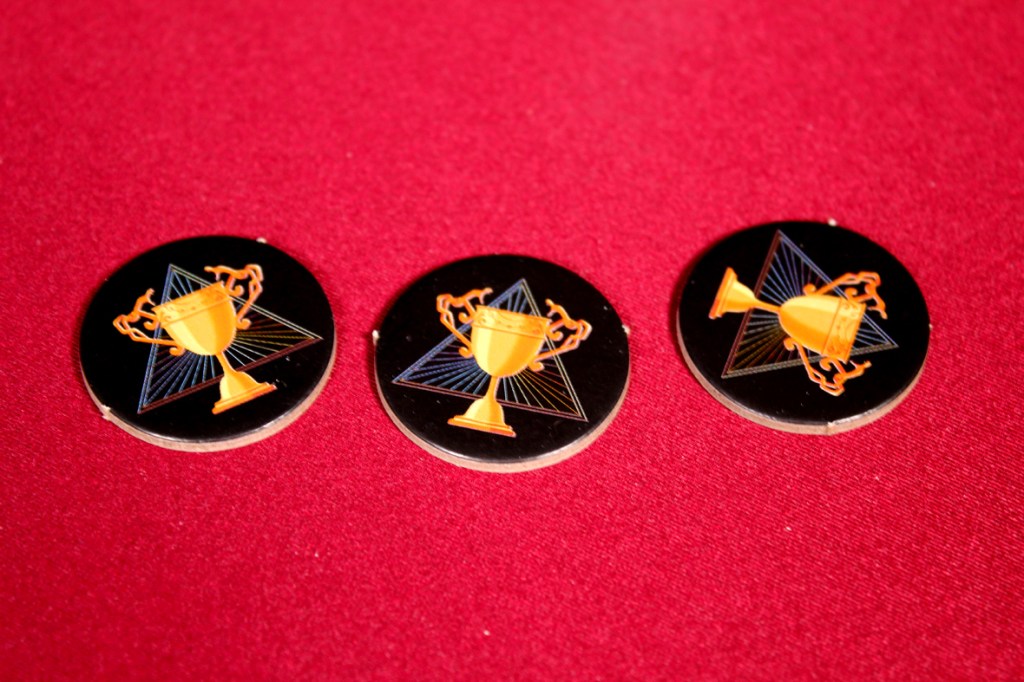 Each player should shuffle them up and set them aside. Also set nearby the three Victory Tokens: