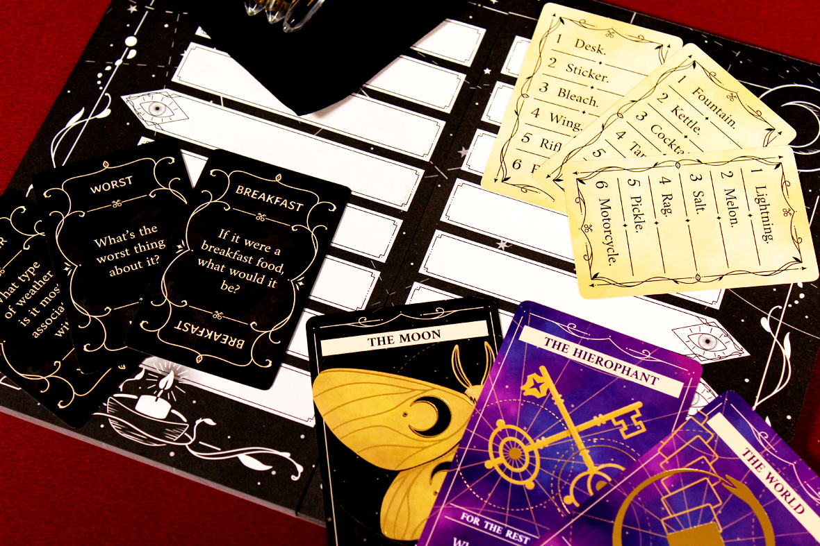 Overall, I think Phantom Ink: Arcana is a lot of fun! It’s a standalone expansion, so, you know, you can play Phantom Ink alone or with the Arcana extras. That alone is a positive, since even if you don’t like what Arcana adds, if you like Phantom Ink, this adds more words and more questions. I like the modularity of games like that; it’s respectful of what made the original game fun even as it tries its own thing. That’s ideal for a standalone expansion. Plus, there’s so much new art from Spring Yu and it’s impeccable. The choice to use gold foil for accent effects is an inspired one that makes me want a Spring Yu Tarot Deck, to some degree. There’s a lot to those cards and they’re great to look at even if you’re not playing them straight away. There’s also a cooperative mode that I’m excited to dig more into!
