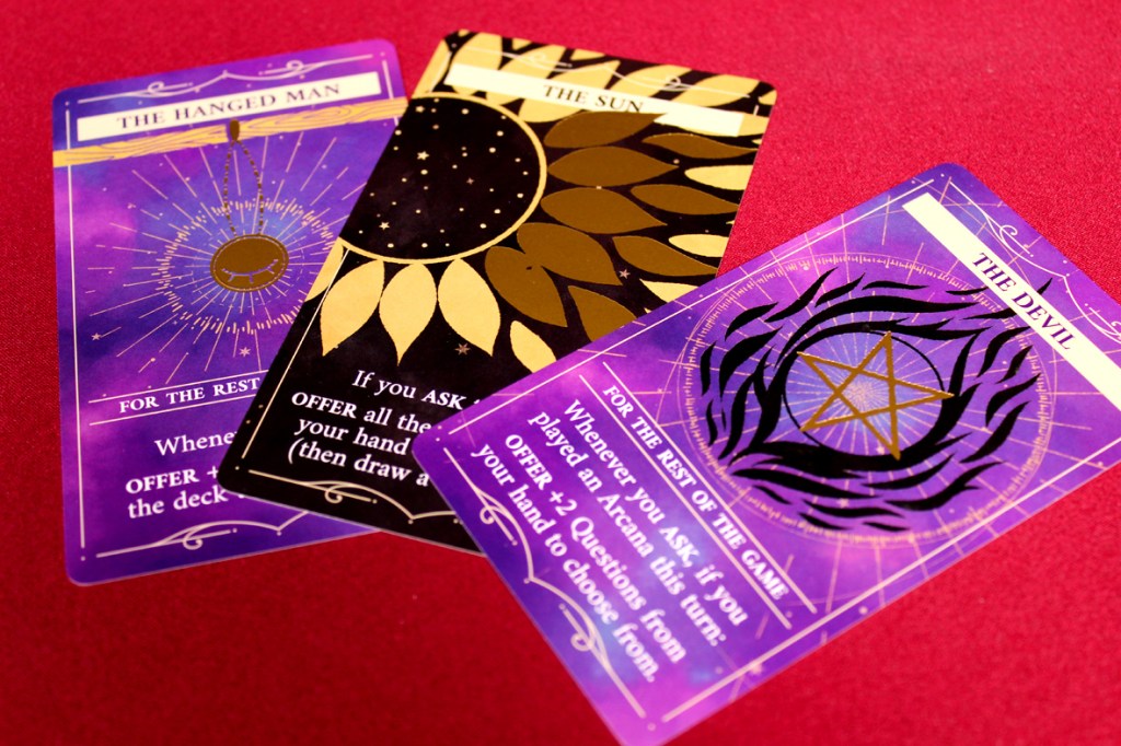 That said, there are some things I’m a bit less enthused about with this one. It might just be random chance, so I’m not inclined to lean too much on this, but I wasn’t as impressed with the question selection this time around. Maybe a bad shuffle, but I had so many cards that asked about how the object was used that I felt like I almost had nothing to ask, at times. That said, this was a minor complaint. The Arcana Cards are fine, though sometimes I worry I’m more visually interested in them than from a gameplay standpoint. They’re not bad, but they’re not necessarily going to be game-changers either, for the most part. They’re just kind of nice. The major upgrade is being able to dump a crystal to refresh your question cards, but that means you play one fewer Arcana card over the course of the game. It’s a tossup.