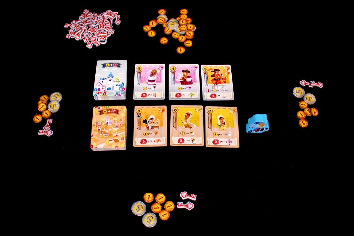 Not a ton. Set out the keys and coins. Each player gets two keys and 15 gold: