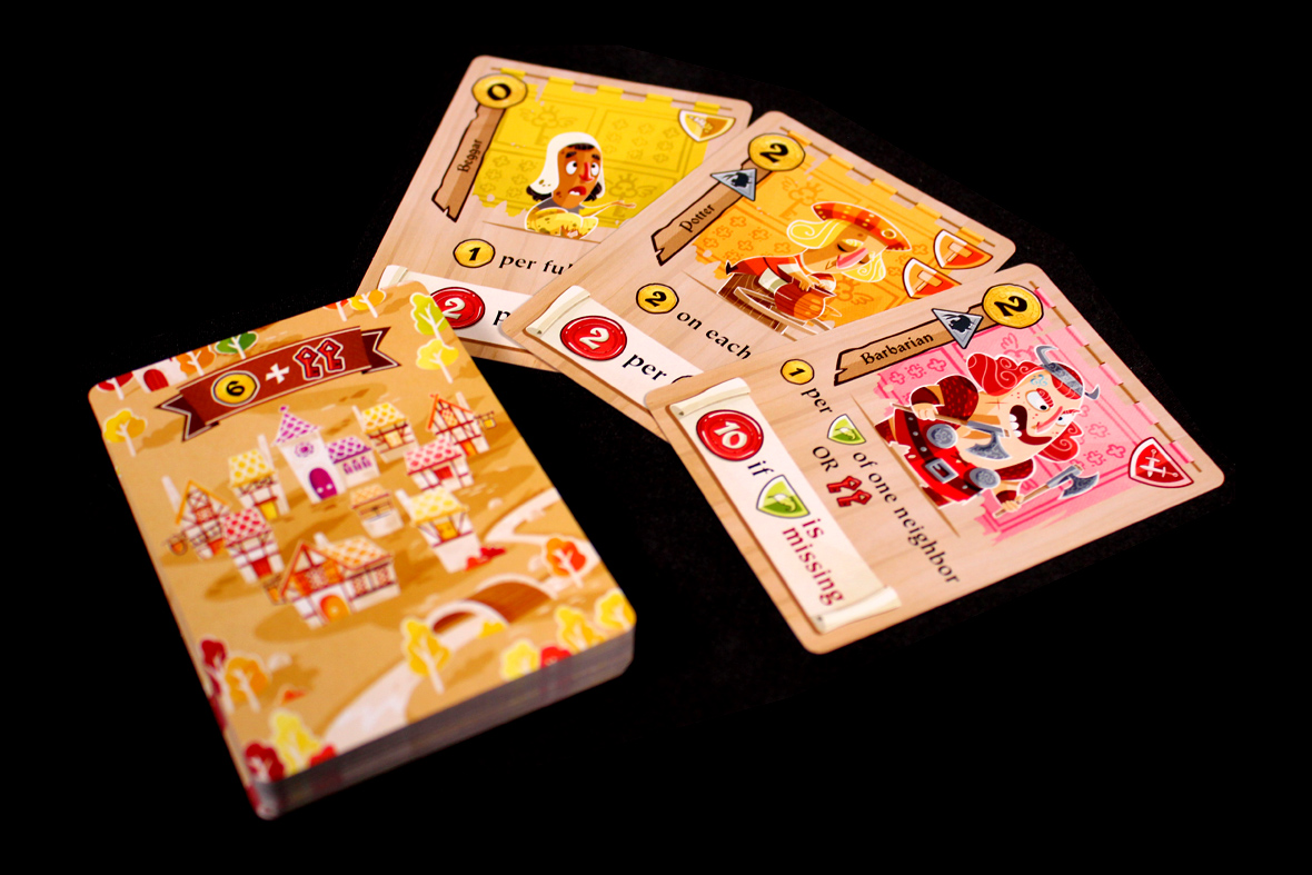 I wouldn’t say many, since it’s another drafting game, but the double-row draft changes things a bit by causing a weird skip effect, here. Generally, the Messenger Pawn tends to bounce from one row to another every turn. This usefully means that in a three player game, you’d get Castle, P2 gets Village, P3 gets Castle, and you get Village next round (ideally; your exact cadence may vary). This also means with an even number of players, you get a symmetrical bouncing effect so you tend to stay in one place (again, this is relative; you may not see a lot of cards that change the Messenger Pawn’s location or you may even just not take them). Given that this has a very imprecise chance of happening based on player count, I can’t say I have a strong preference; it’s just something to watch out for no matter how many players you’re playing with.