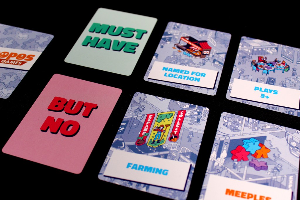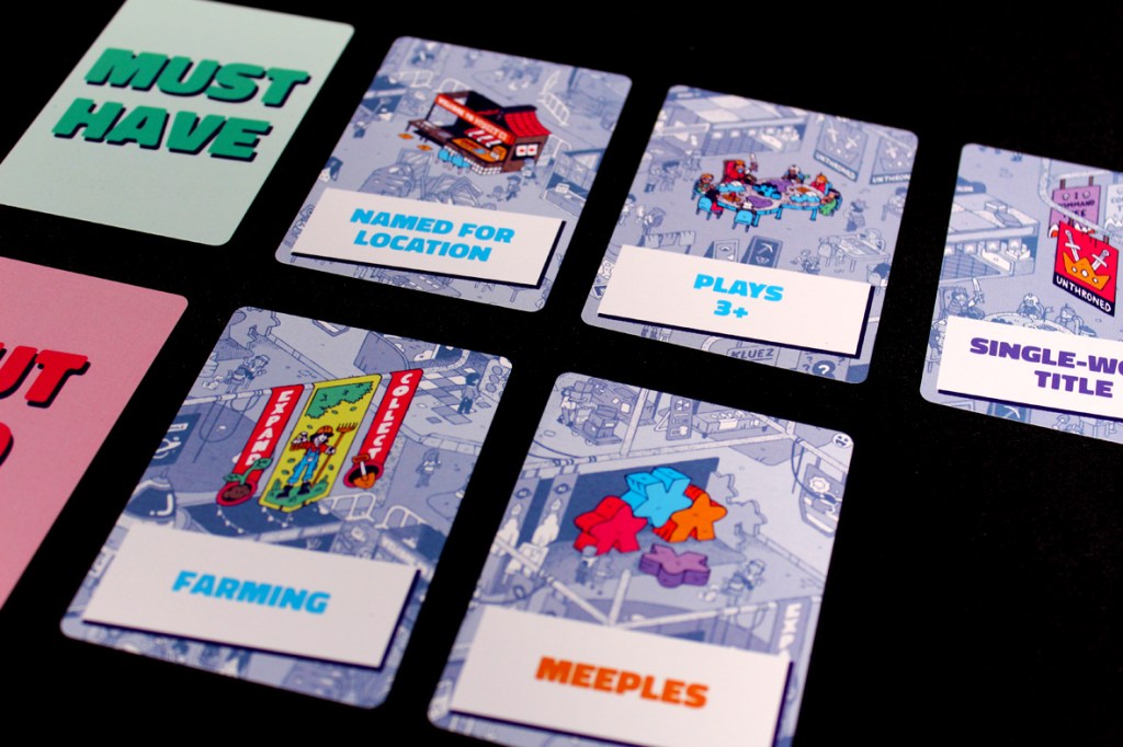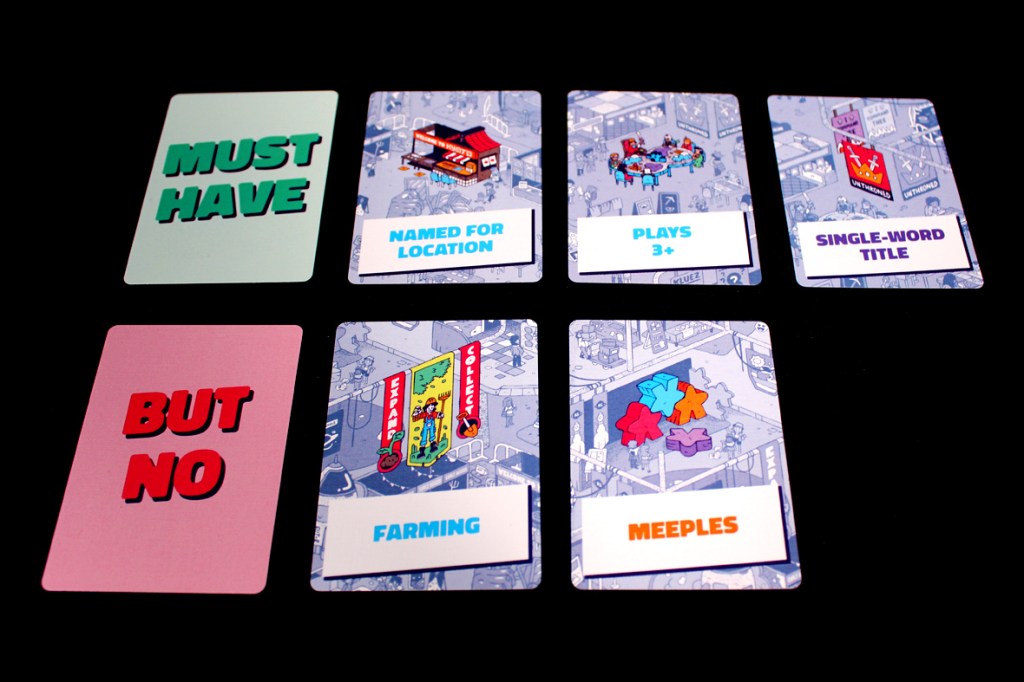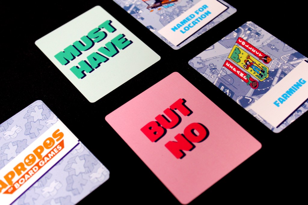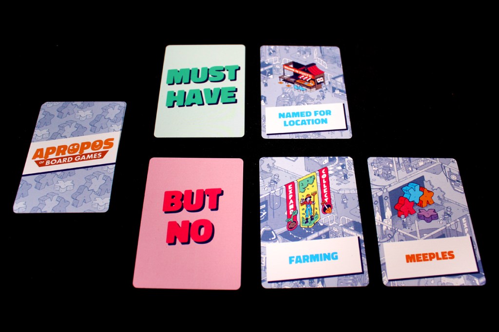 Like Apropos: Of Movies, Apropos: Of Board Games brings back the “Must Have” and “But No” categories to challenge your knowledge of tabletop gaming! This time around, you’ll play each round by naming a board game and then placing the next category card either in “Must Have” or “But No” so that the previously-named board game no longer fits. With a five-minute timer, you don’t have a lot of time to figure things out. But if you can successfully name five games, you win! How’s your board game vocabulary?