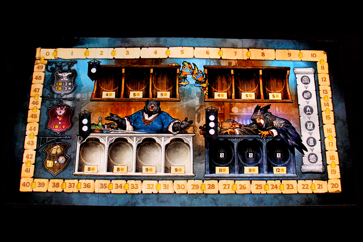 Not a ton, really. Satchel Quest isn’t a huge contender in terms of player interaction. You largely draw your chips independently, play them out, and see how things end up. Where you can interact is during the chip-buying step, I suppose, but even that’s not particularly intense. If someone takes something you want, you just need a tool and you can spend your Browse Action to just refresh the relevant market. With fewer players, you do run the risk of the market becoming a bit stale. Tokens that nobody wants kind of … stick around. Again, another reason to refresh it every now and then, and with more players you have more shots to get a refresh (but more players taking from the market). I wouldn’t say that I have a huge player count preference though; it’s a fairly solitary game.