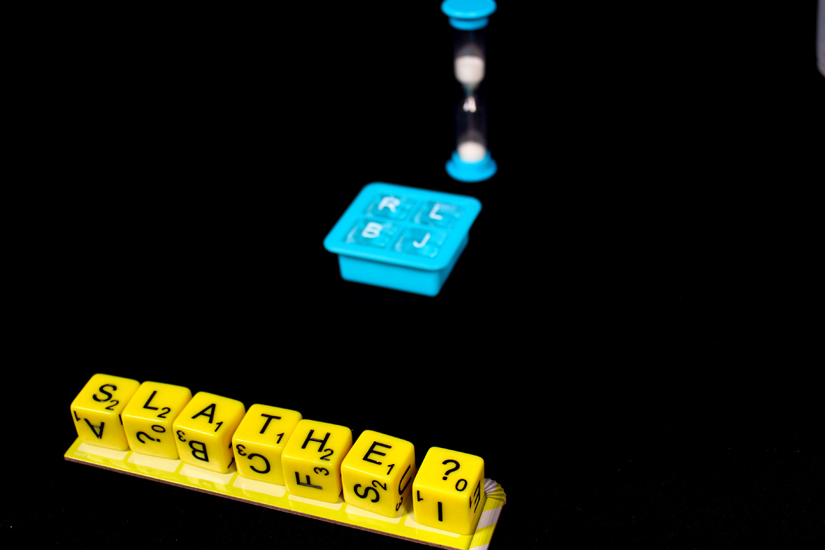 After two minutes, you score your word. To do so, sum up the total of your letters. Then, multiply it by the number of Target Letters in the center you match (you only add one to your multiplier, no matter how many times you use a Target Letter in your word). If your word is 5 / 6 / 7 letters long, you add an extra 5 / 10 / 25 to your score for your total for the round. If you’re playing with the Sugar Cube Variant, give the cube to the player with the lowest score and then start a new round!