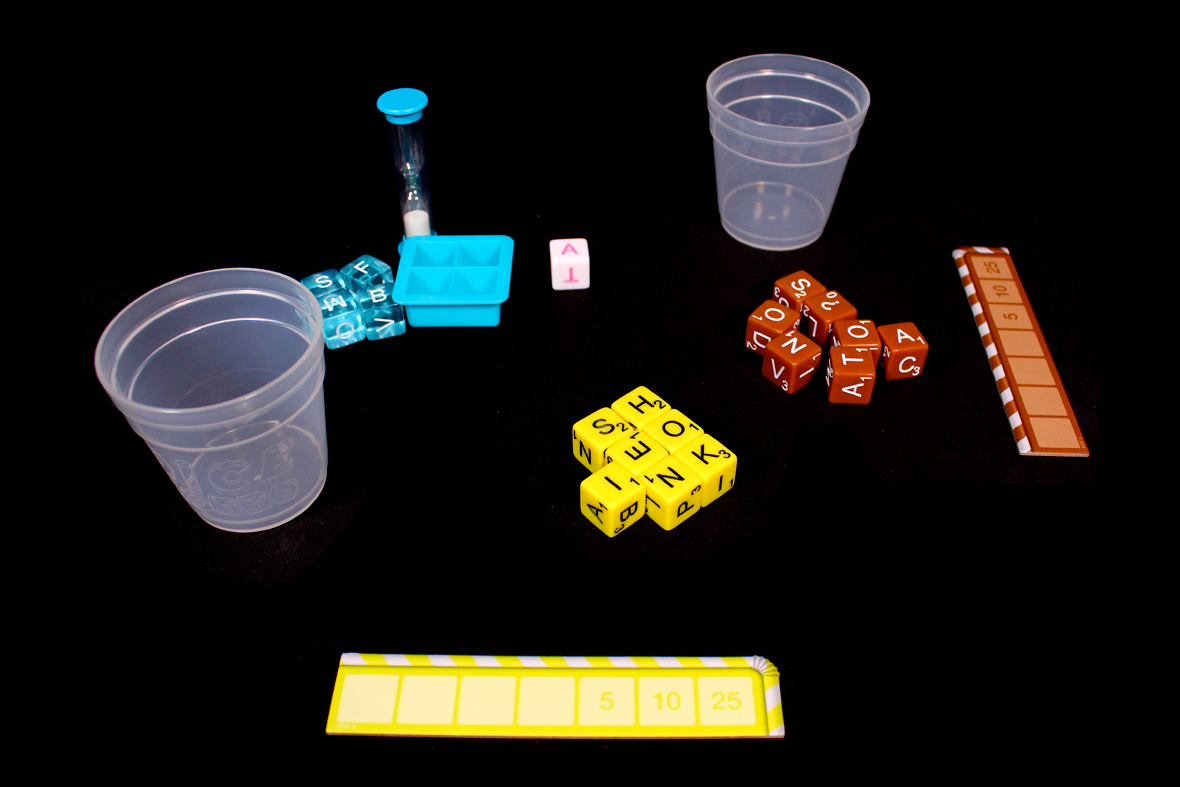 To start a round, each player rolls their dice and then one player rolls the Ice Dice and flips the timer. Over the next two minutes, you can reroll your dice two additional times, but you must keep the final result. Your goal? Assemble a word that’s worth the most points!