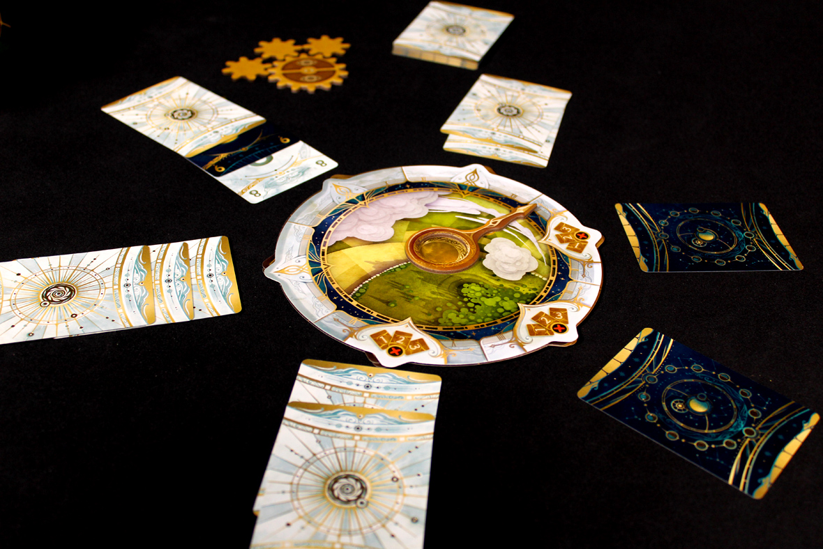 Take out the clocks and make a face-down stack, then flip the top one up. Shuffle the Solar and Lunar Cards together: