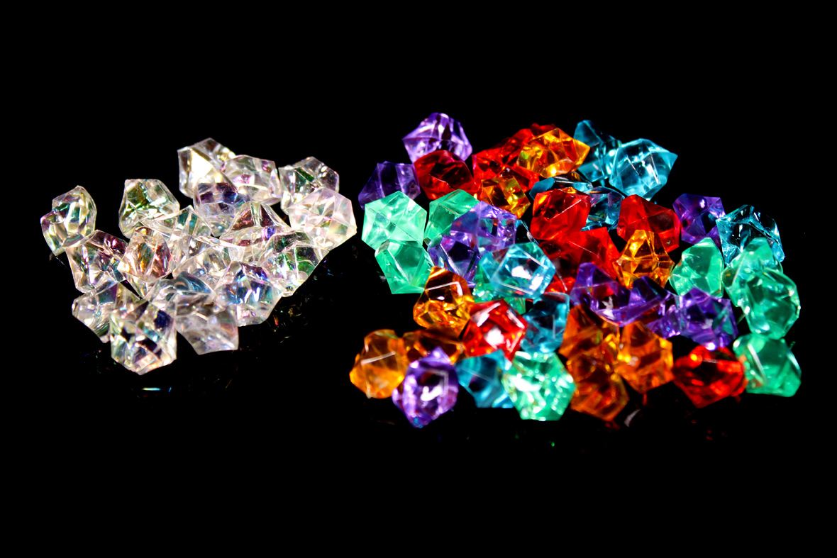 Make five roughly-even stacks face-down. Place three gems in front of each at random: