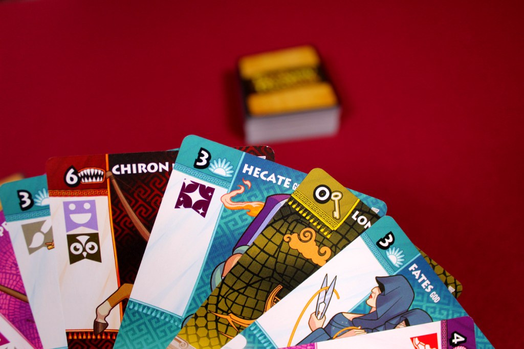 Overall, I like Fantasy Realms: Greek Legends, with some caveats. It’s a sometimes-mixed bag that mostly resolves out to “good”, in my book. There are plenty of high points: first, as you might guess from this whole review series, I’m a big fan of Greek mythology. It’s all messy and dramatic and a dude turning into a shower of gold coins for no particularly discernible reason. A swan that one time. I like the stories and the characters and I like how they’ve influenced an unbelievable amount of downstream Western literature and canon. It’s just neat to see themes with such lasting power and, so, here we are. I also like the art! It’s cartoony without being too much so (a sort of different comic book-style spin on the Mr. Cuddington style seen in Santorini). I appreciate that they went the Hades route of the Greek gods being a particularly diverse set of individuals; I think that’s fun. Fantasy Realms, at its core, is also extremely easy to pick up and play and a quick play, to boot. Neither of those things have changed with Greek Legends, and I appreciate that. Modify the game as you want, but don’t mess with the core loop of some things.